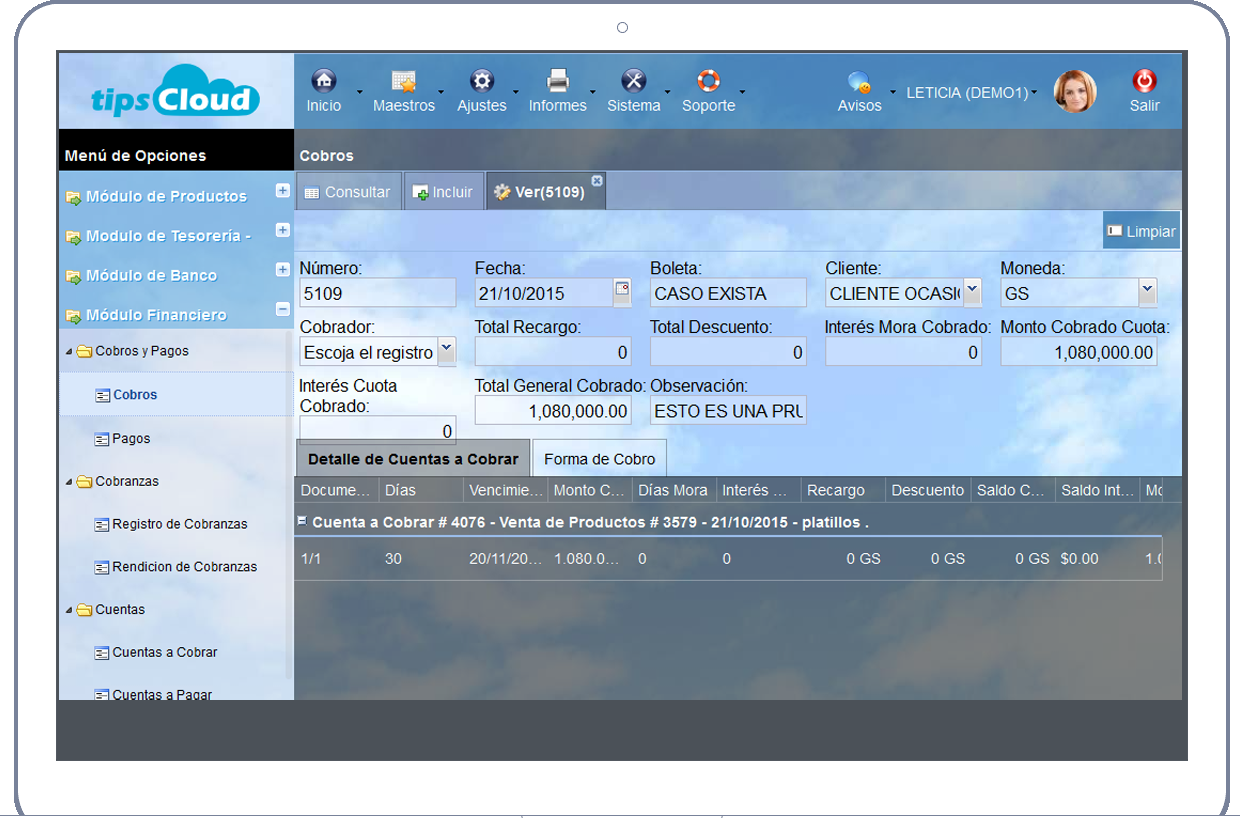 Es un sistema bastante práctico e innovador por que se accede directamente por Internet. Tenemos varias sucursales distribuidas y realizamos entre 500 a 600 cobranzas al mes las cuales facturamos con el Sistema.