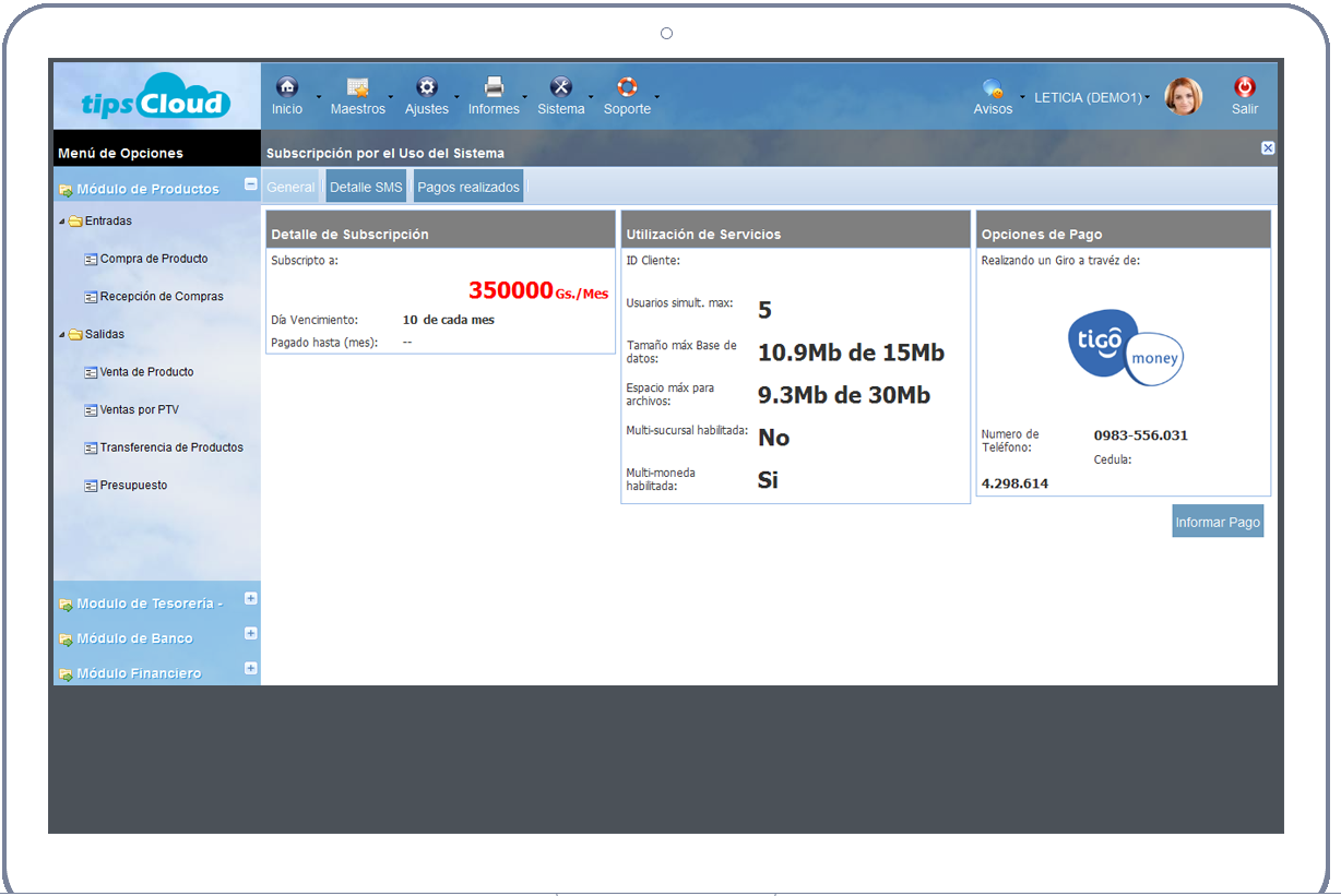Contraté el Servicio de Tips hace más de un año, hoy en día dejo todo a cargo de mis funcionarios pero sé que ellos trabajan diariamente sin problemas y cuando tienen duda llaman al Soporte, a mi solamente me interesan los informes generenciales, que nunca dejo de controlar.